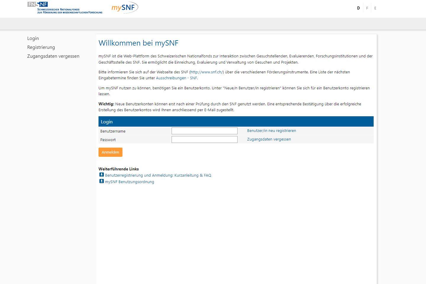 3. Sich im SNF-Portal anmelden