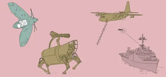 Nature is superior to our technology in many ways. So why not bring together biology and technological progress? One of the most surprising research programmes of the Defense Advanced Research Projects Agency (DARPA), a branch of the US Defense Department, is called 'Hybrid Insect Micro-Electro- Mechanical Systems'. It is trying to breed crawling and flying insects into which microcontrollers have already been inserted at the larval stage, and which then develop into remote-controlled, hybrid beings. These could be used primarily in the areas of surveillance and espionage. The researchers have also been investigating biological weapons. But very little has emerged as yet about any concrete research successes.