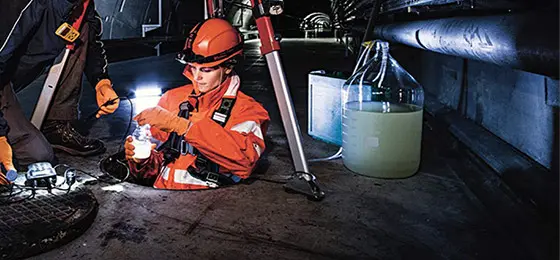 “It’s very slippery down there. But nothing’s ever happened to me. I’ve only once landed on my behind. I’m well equipped with waders, a protective suit, a helmet and a facemask, and I’m secured by means of a wire cable that’s fixed above the manhole cover. I also have a small device with me to warn me if carbon monoxide or hydrogen sulphide fumes reach a level where they’re poisonous. What’s really exhausting is that I’m 1.8 metres tall, but the sewers are often less than 1.5 metres from top to bottom. So I have to work bent over most of the time, and my back really hurts after collecting samples for half an hour.