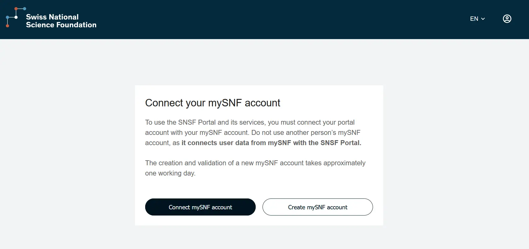 To be able to use our portal, you also need a SWITCH edu-ID and mySNF access. Here you will find step-by-step instructions for logging in to the SNSF Portal for the first time.