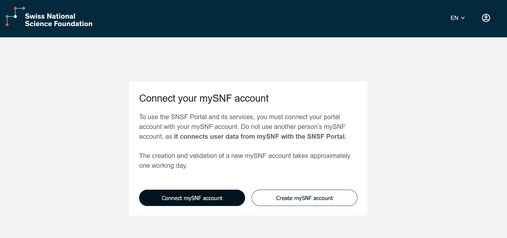 6. Connect the SNSF Portal with the mySNF account
