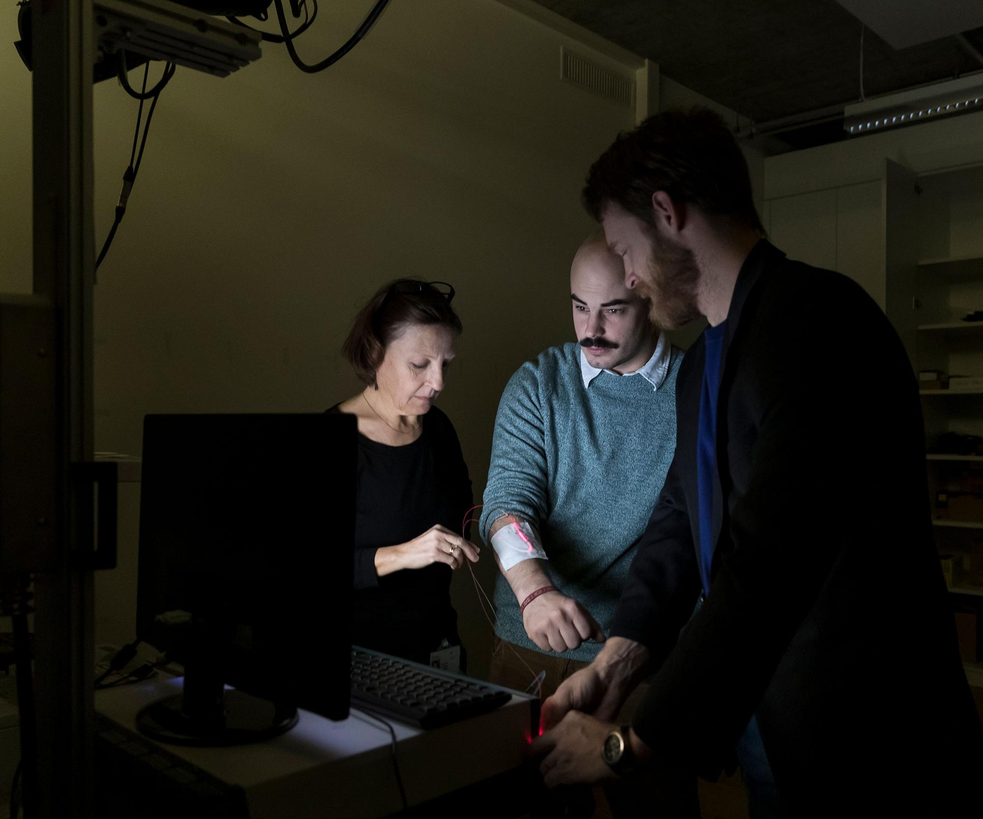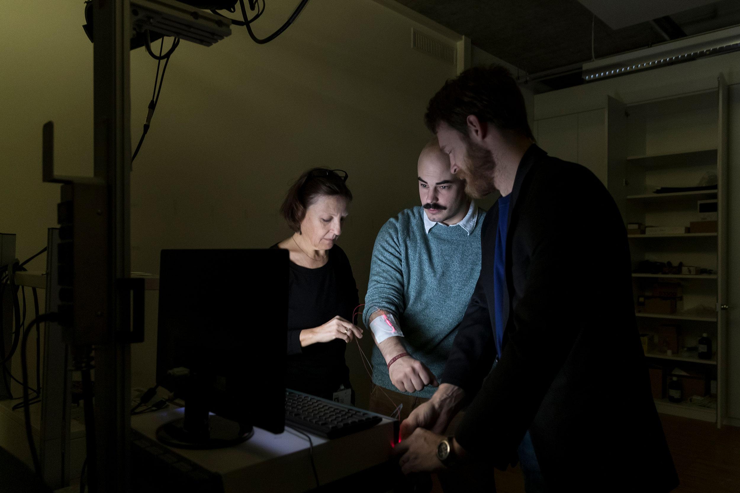 Ursula Wolf, professeure à l’Université de Berne, développe en collaboration avec des scientifiques de l’EMPA et de la Haute école technique interétatique de Buchs un système de capteurs textiles qui déclenche un signal d’alarme en cas de danger et prévient ainsi les blessures dues à la pression.
