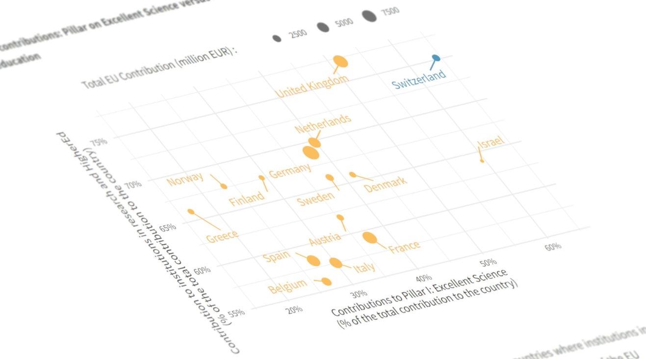 Les chiffres nouvellement calculés illustrent la forte baisse des contributions des programmes de l’UE aux institutions suisses entre 2014 et 2017. Ils témoignent également de la pertinence de la Suisse et du Royaume-Uni en termes d’excellence scientifique.