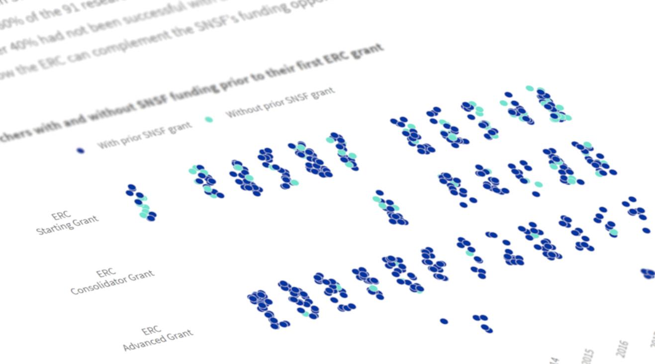 Les chercheuses et chercheurs qui travaillent en Suisse ont beaucoup de succès avec les subsides du Conseil européen de la recherche (CER ; en anglais : European Research Council, ERC). Notre analyse montre que jusqu’en 2019, 84 % de ces bénéficiaires avaient déjà reçu des fonds du FNS.