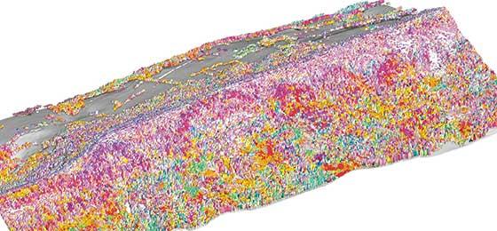 Was Ce qui ressemble à une oeuvre pointilliste montre une forêt s'étendant sur la colline du Lägern près de Baden (AG) et ses quelque 44 000 couronnes d'arbres. Elle illustre la grande diversité de l'activité biologique en juillet 2015: la couleur rose atteste par exemple d'une importante teneur en chlorophylle. Grâce à deux instruments de mesure très sensibles, l'équipe du géographe Michael Schaepman de l'Université de Zurich analyse la variété de la végétation depuis un avion.