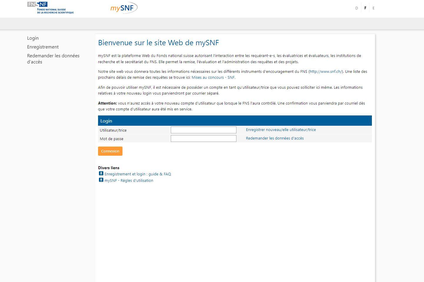 En cliquant sur le lien mySNF, vous pourrez créer un compte si vous n’en avez pas encore.